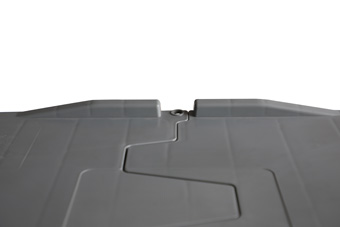 絞合式密閉箱蓋,鋸齒形箱蓋互相咬和,保證箱子的密閉性,并提高箱蓋的堆垛能力